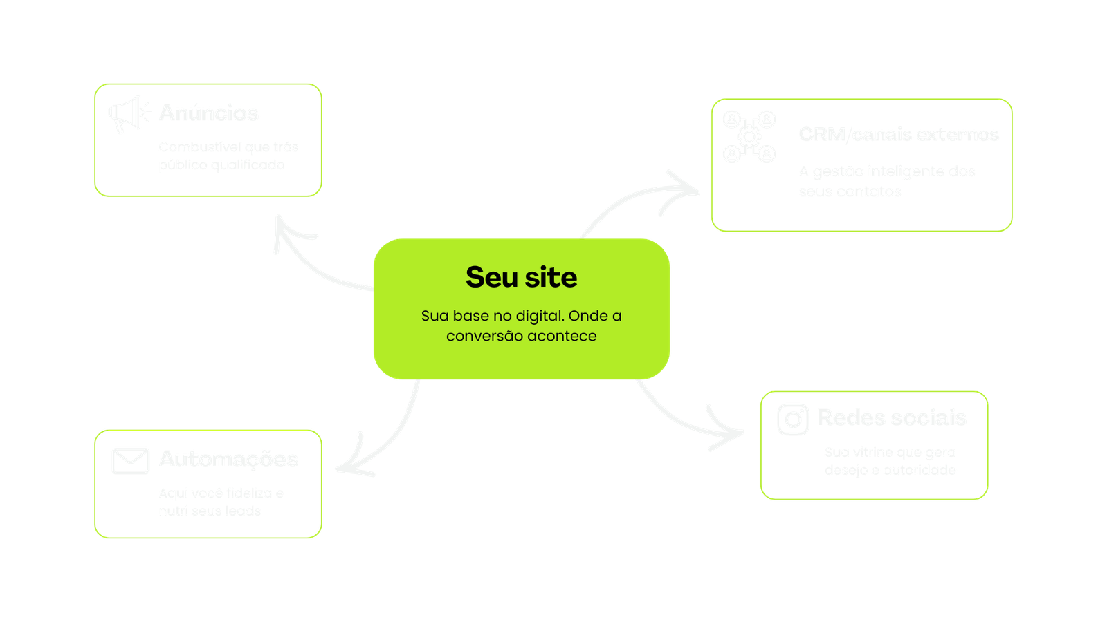 Redes sociais e anúncios atraem, mas é no site que a conversão acontece.